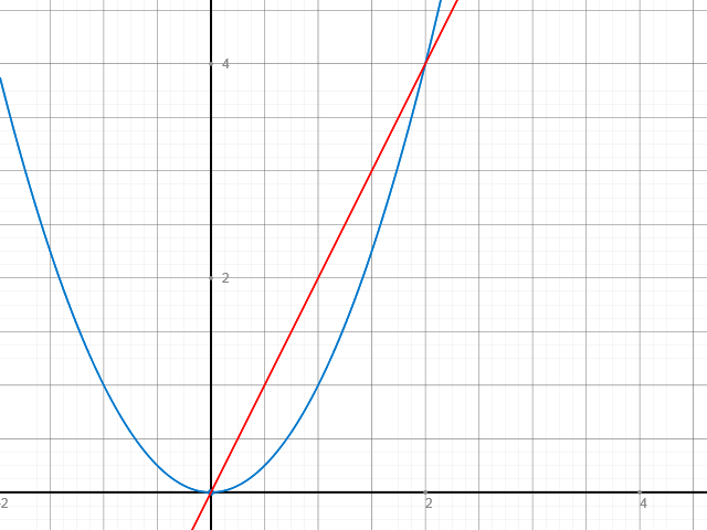 Überprüfe also, ob Deine Sekante die Steigung 2 hat. Sollte so aussehen: