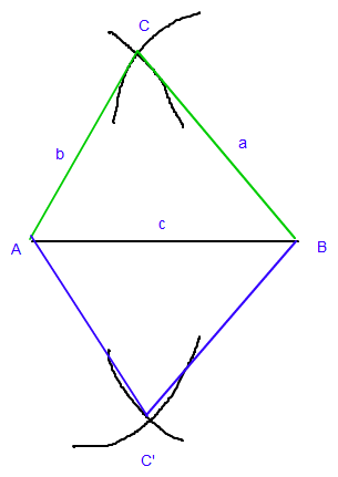 Die Basis kann eigentlich nicht AB=c sein. Denn Seite a und b müssten dann gleich sein.
