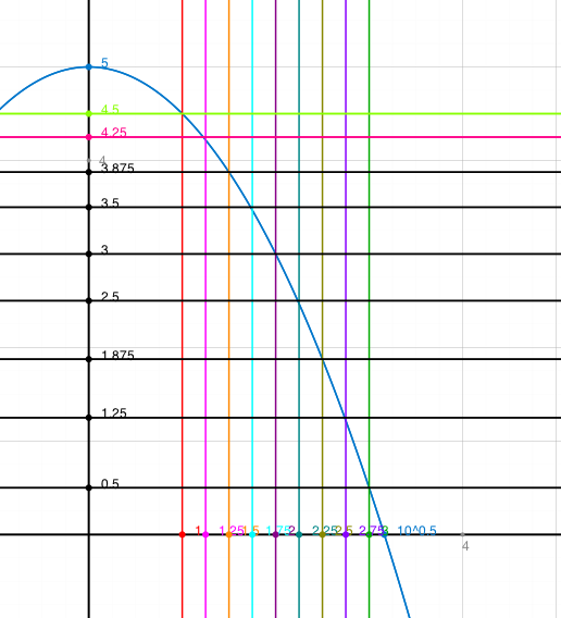 5. Untersumme: Treppchen unterhalb an die Kurve zeichnen und dessen Fläche berechnen: