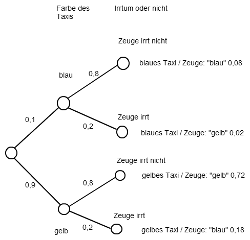 Aber die Wahrscheinlichkeit dafür, dass der Zeuge "blau" aussagt und das Taxi in Wirklichkeit gelb war, beträgt