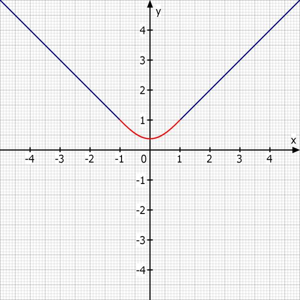 Gesucht ist z.B. eine ganzrationale Funktion die die beiden Straßenteile, knickfrei und krümmungsfrei verbindet.