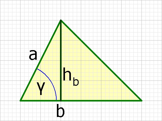 A = 1/2 * b * a * sin(γ) = 1/2 * a * b * sin(γ)