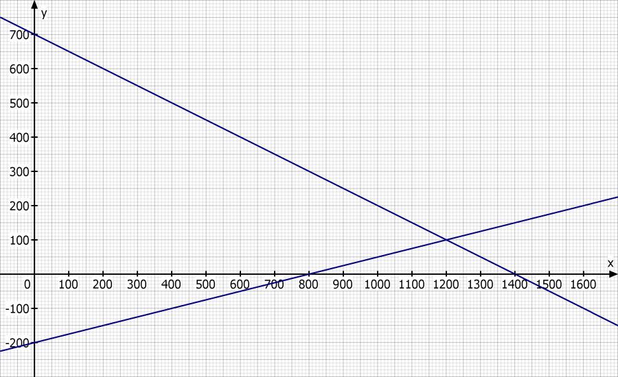 Zu modellieren ist also die Angebotsfunktion durch die Punkte (1000, 50) und (1400, 150)