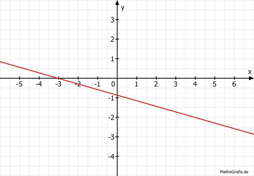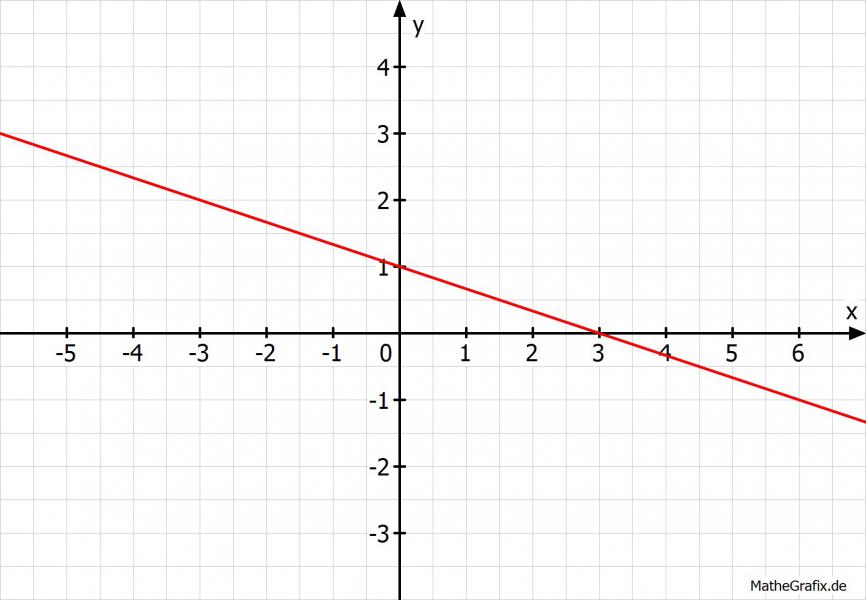 Nun trägst Du von dort die Steigung ab. Das funktioniert so, dass Du den Nenner nimmst (hier 3) und um so viel nach rechts gehst. Dann schaust Du nach dem Zähler ist dieser positiv, so gehst Du nach oben, sonst nach unten. Hier ist er -1. Du gehst als um 1 nach unten. Das sollte dann so aussehen:
