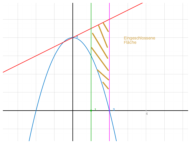 f(x)= 4-x2 und g(x)= 1/2x+4 über dem Intervall [1;2]