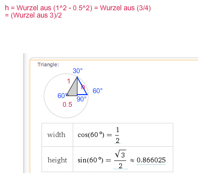 sin und cos: vgl. Link im Kommentar. und Skizze, die ich via https://www.wolframalpha.com/input/?i=cos%2860°%29 erstellt habe.