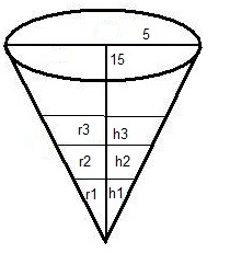 die nächste höhe der markierung ist wieder die höhe eines kegelstumpfs, ... etc.