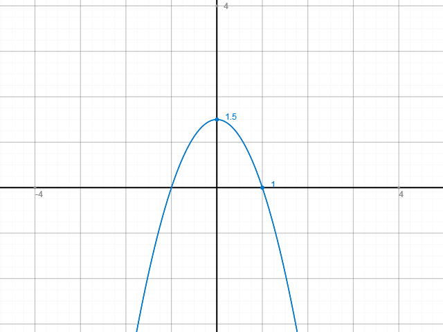 Wir wussten ja schon, dass die Funktion einen Hochpunkt auf der y-Achse hat, also die y-Achse schneidet, und dass die Nullstelle bei x = 1 liegt.