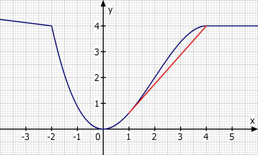 Du legst jetzt nach dem obigen Schema eine Tangente von R an f und bestimmst dann den Funktionswert der Tangente an der Stelle 4.