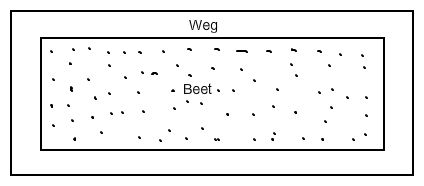 In einem Park ist ein rechteckiger Blumengarten 25m lang und 15m breit. Um ihn herum soll ein Weg von gleichbleibender Breite b gepflastert werden. Der Gärtner hat Steine für eine Fläche von 84m² anfahren lassen. Berechne wie breit der Weg wird.