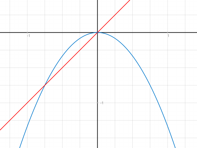 Probe: f(x) = -4/3 x2   und g(x) = x aufzeichnen und schauen, ob die Gerade im angegebenen Bereich unter der Parabel verläuft.