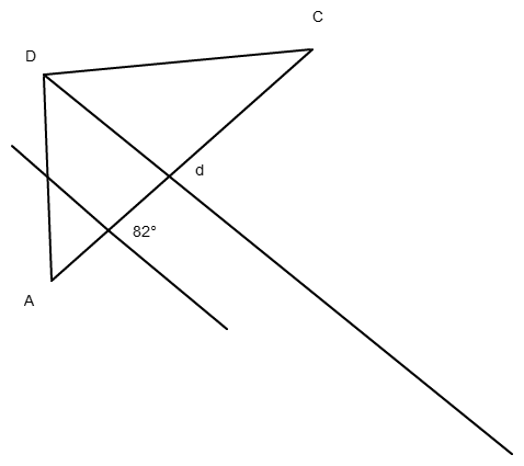 Ich habe irgendwo auf e diesen Winkel von 82° angelegt und dann eine Parallele zu dieser Geraden durch D gezogen: