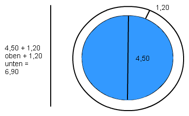 Dieser große Kreis hat also einen Radius von 3,45 Metern.