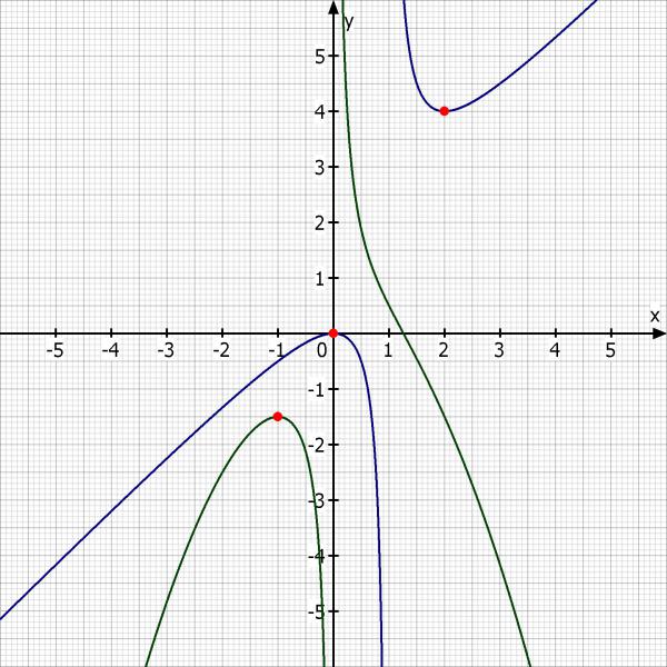 c.) Bestimmen Sie die Extrempunkte der Funktionen f und g mit Hilfe des hinreichenden Kriteriums der zweiten Ableitung.