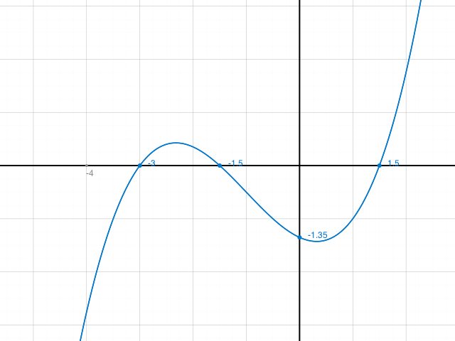 Die Methode der Intervallhalbierung: f(x) = 2(x+3/2)(x+3)(x-3/2),