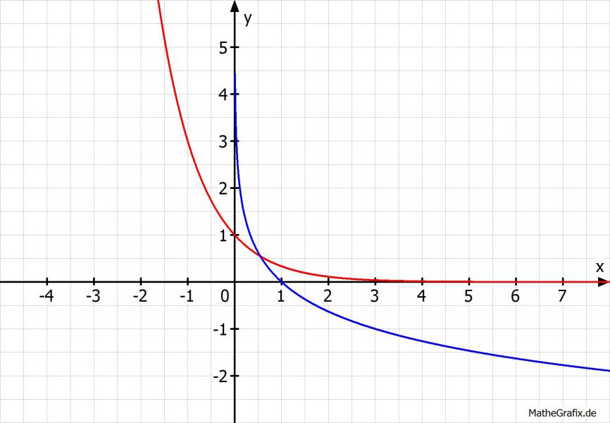 x = -ln(5)/ln(3) ≈ -1,465 (siehe auch Schaubild. Das passt)
