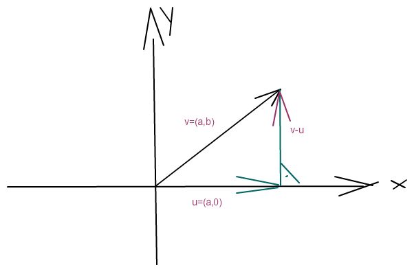 Und v-u =(a,b)-(a,0) = (0,b)