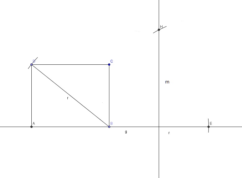 strecke auf die gerade g, das ergibt den schnittpunkt E.