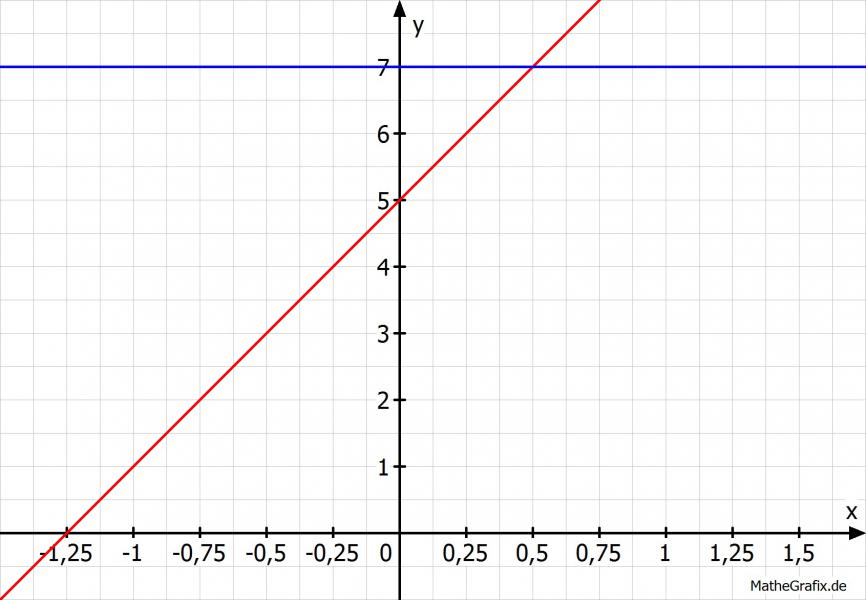 (Kontrolle durch Rechnung: 4x+5 = 7 ---> 4x = 2 ---> x = 0,5)