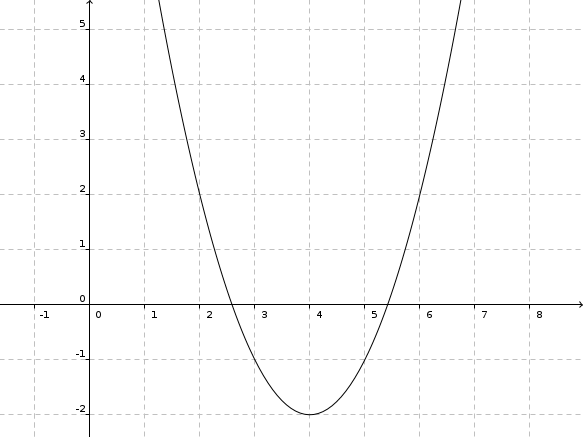 Parabel, nach oben geöffnet, nicht gestreckt oder gestaucht, um 4 nach rechts und um 2 nach unten verschoben, S(4|-2)