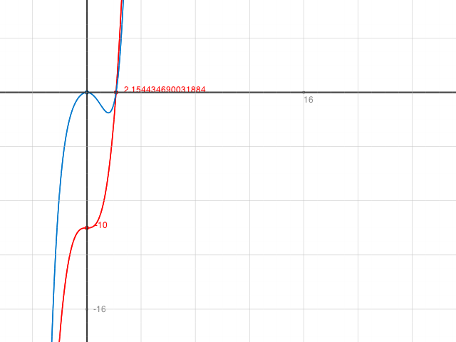 Betrachte auch noch g(x) = x^3 - 10 im Vergleich mit f(x)