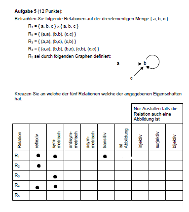 Bei R5 wusste ich nicht, welche Eigenschaften ich ankreuzen soll. Sie ist definitiv nicht reflexiv, symmetrisch oder transitiv.