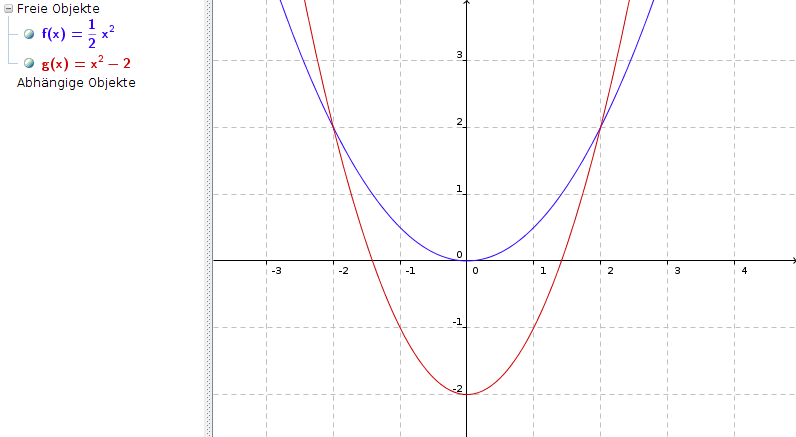 Sie haben P(2|2) gemeinsam, also setzen wir x = 2 und y = 2 in die beiden Funktionsgleichungen ein: