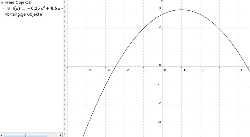 1. Wie bestimme ich eine ganzrationale Funktion vom Grad 2 deren Graph durch die Punkte A(1/3),B(-1/2),C(3/2) geht?