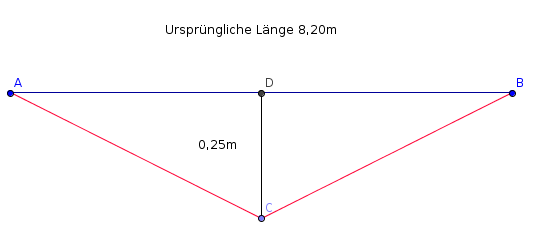 Die ursprüngliche Länge des Seils war 8,20m (blaue Strecke).