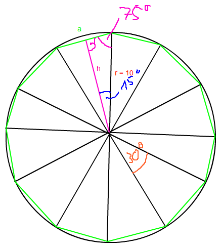 Insgesamt haben wir also einen Flächeninhalt von A12-Eck = 12*25 cm^2 = 300 cm^2