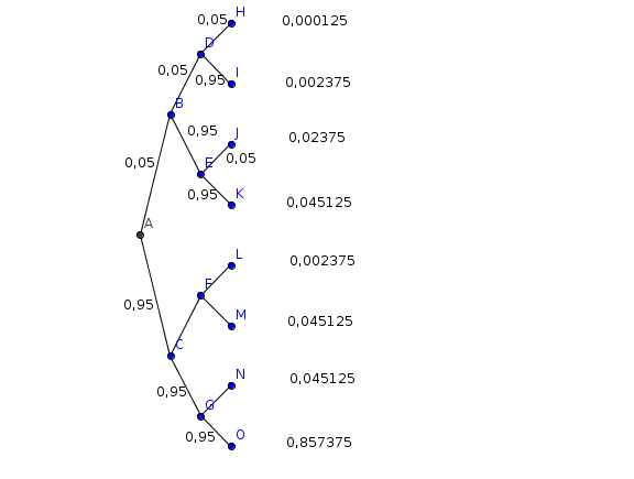 P(011) = 0,95 * 0,05 * 0,05 = 0,002375