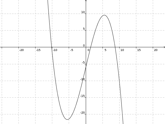 f(x) = -0,046875x3 + 4,25x - 6