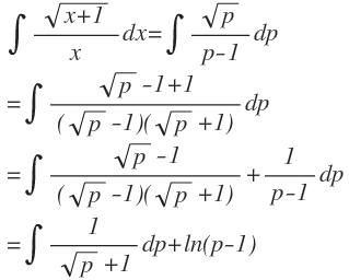 so jetzt eine nette Substitution und zwar $p=x+1$. Dann ist $dp=dx$. Nun wieder eine Null ergaenzen und dann 3. Binomische Formel im Nenner: