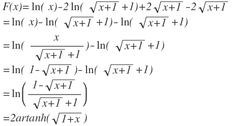 So jetzt haben wir alle Integrale ausgerechnet Nun noch ruecksubstituieren (zwei mal) und wir erhalten die Stammfunktion