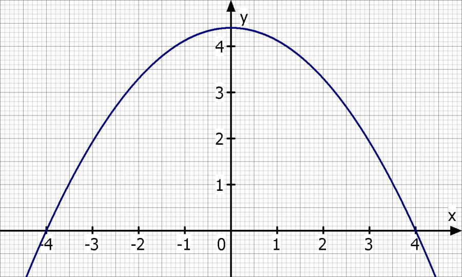f(x) = a * (x - Sx)^2 + Sy = - 0.275 * (x - 0)^2 + 4.4 = 4.4 - 0.275·x^2