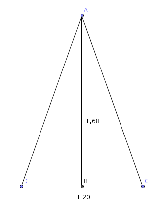 Wir haben also zwei rechtwinklige Dreiecke mit den Katheten 60cm und 168cm.