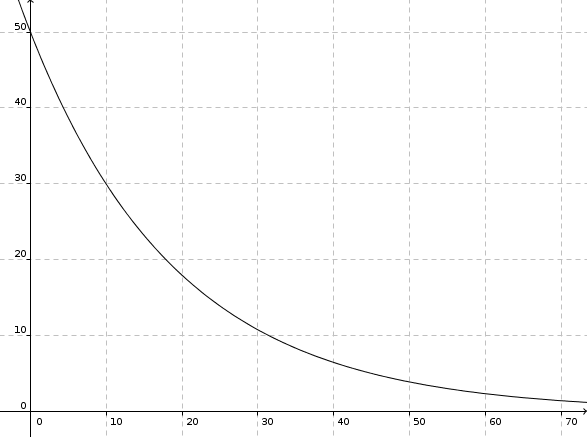 Nun erhöhen wir einfach den Startwert auf 50 und erhalten die Funktionsgleichung
