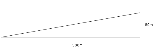 tan(α) = Gegenkathete/Ankathete = 89/500