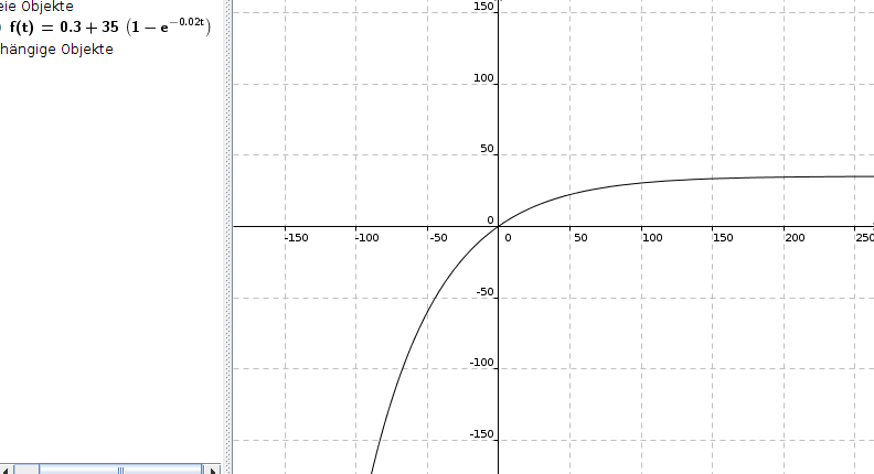Funktion lautet:     f(t)=0,3+35(1-e^-0,02t)^2