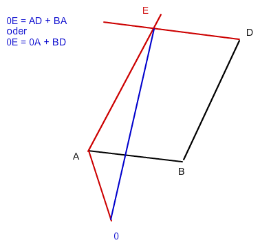 Zu 5) Verstehe den gesamten Ansatz nicht! Warum 0E = 0A + BD ???