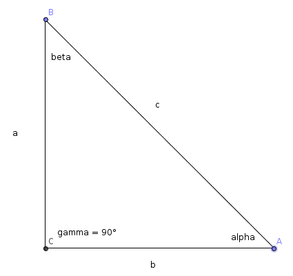 cos(β) = Ankathete/Hypotenuse = a/c