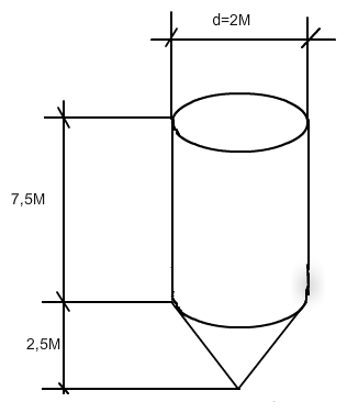 Ein Getreidesilo besteht aus zwei Bereichen. Der untere Abschnitt ist ein auf dem Kopf stehender Kegel; er hat einen Durchmesser von zwei Metern und eine Höhe von 2,5 Meter. Der zylindrische obere Teil hat denselben Durchmesser und eine Höhe von 7,5 Meter. An der Außenseite soll eine Füllstandsanzeige angebracht werden, bei der das Füllvolumen abgelesen werden kann.