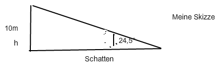 wie lang ist der waagerechte Schatten eines 10m hohen Maiglöckchens, wenn die Sonne 24,5° über dem Horizont steht?