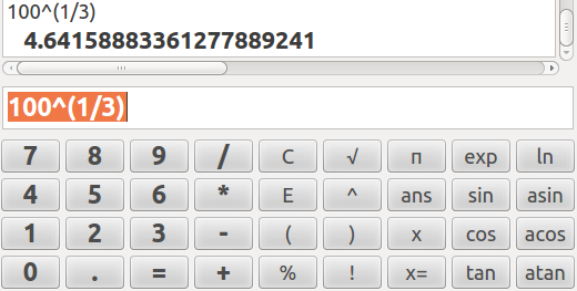 Du musst die 3. Wurzel aus 100 ziehen, also 3√100.