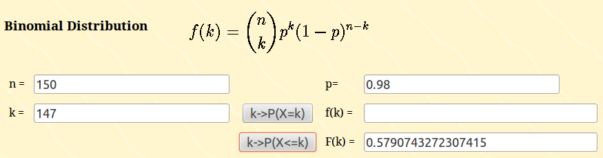 Ich gebe diese Werte in die summierte Binomialverteilung ein