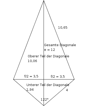 Dann ist die Strecke von der Mitte bis zur oberen Spitze ≈ 12 - 1,94 = 10,06