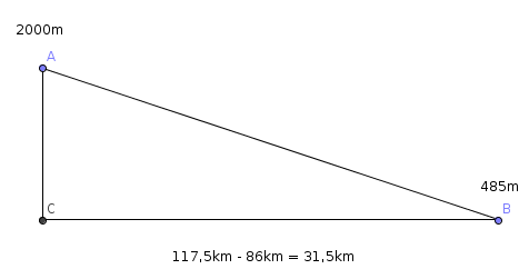 Die waagrechte Entfernung beträgt 31,5km = 31.500m
