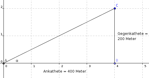 tan(α) = Gegenkathete/Ankathete = 200/400 = 0,5