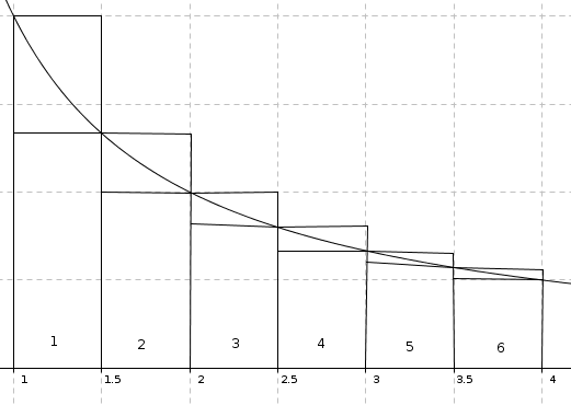 (OS + US) / 2 = [ 0,5 * f(1) + f(1,5) + f(2) + f(2,5) + f(3) + f(3,5) + 0,5 * f(4) ] / 2 =