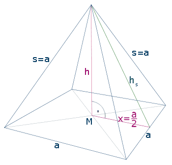 h^2 = s^2+(√2*a/2)^2 = s^2+1/2*a^2